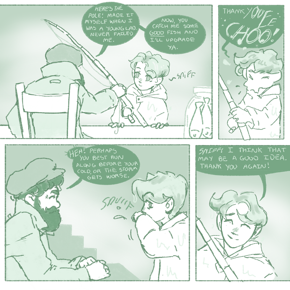 I love the physicality in the acting of your characters and the way you captured wind and rain and movement in the coat and such. There's a lot of great stuff coming together, here. Looking forward to seeing more of this comic and seeing you continue your growth and development as an artist.