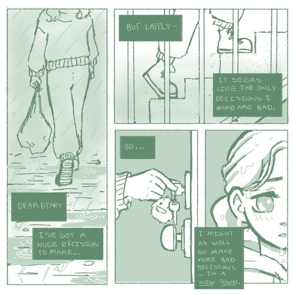 I started this project a little over a year ago when I was a freshman in college. It is interesting to me to see how my art has changed, and how I have improved. You as the reader may notice some discrepancies in style and the faces. I have chosen not to edit these because I see it as a marker of progress made.